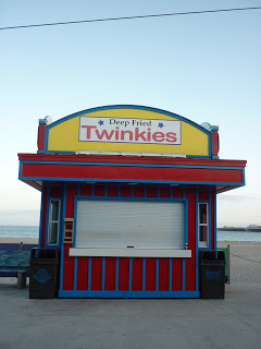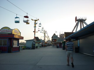 The Boardwalk was full of vintage charm, with quirky, colourful little shacks, wobbly wooden rollercoasters, indoor arcades, and a cable car track running above. What with the eerie silence, conspicuous lack of human life, and creaky looking, old school attractions and rides, i couldn’t shake that niggly feeling that, when I least expected it, a flesh eating zombie would leap out from behind the Twinkie shack in an attempt to gorge on my face.