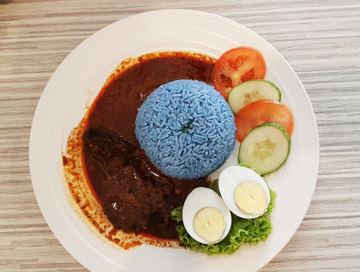 As for Kieran, he went for the Beef Rendang, which was awesome for me, because then I get to take a photograph of blue rice.