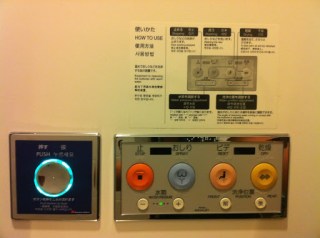 | Typical toilet controls. Note the blue button – yes that a jet stream aimed at a pair of buttocks. And *overshare alert* it’s awesome. |